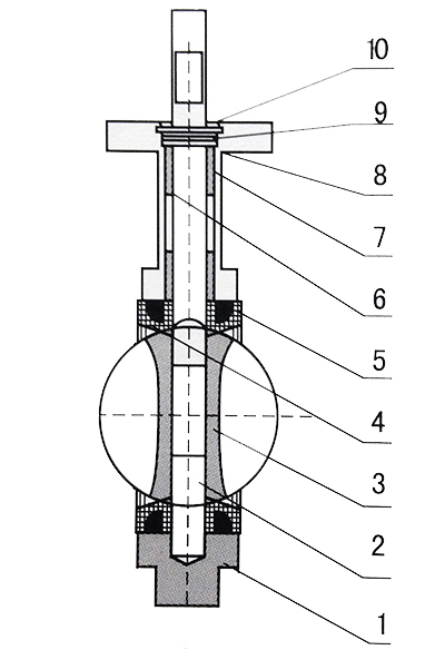 圖中標(biāo)注數(shù)字注釋:1表示閥體,2表示閥軸,3表示蝶板,4表示閥座,5表示填料,6表示襯套,7表示密封圈,8表示圓墊片,9表示對開環(huán),10表示擋圈。