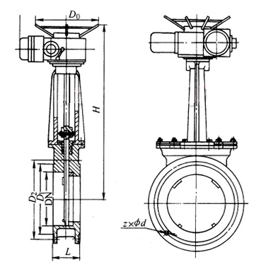 PN1.6MPa下的電動刀閘閥外形尺寸